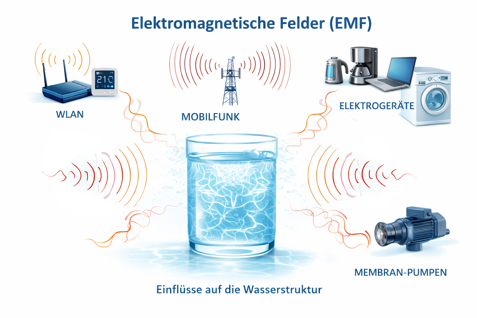 Wasser ein: elektromagnetische Felder (E-Smog).